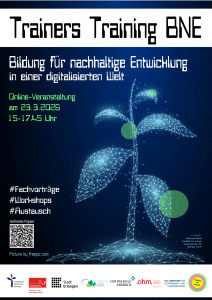 am Montag, den 23. März 2026 findet von 15:00 – 17:45 Uhr unsere nächste (Online-) Netzwerkveranstaltung „Trainers Training BNE (Bildung für nachhaltige Entwicklung)“ statt – dieses Mal mit dem spannenden Schwerpunkt „BNE in einer digitalisierten Welt“.